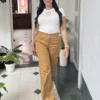 Pantalón de alta costura en lino con corte ajustado y bota recta, realzado por una sutil abertura lateral. Su pretina lisa y diseño sin botones aportan un estilo limpio, moderno y sofisticado.