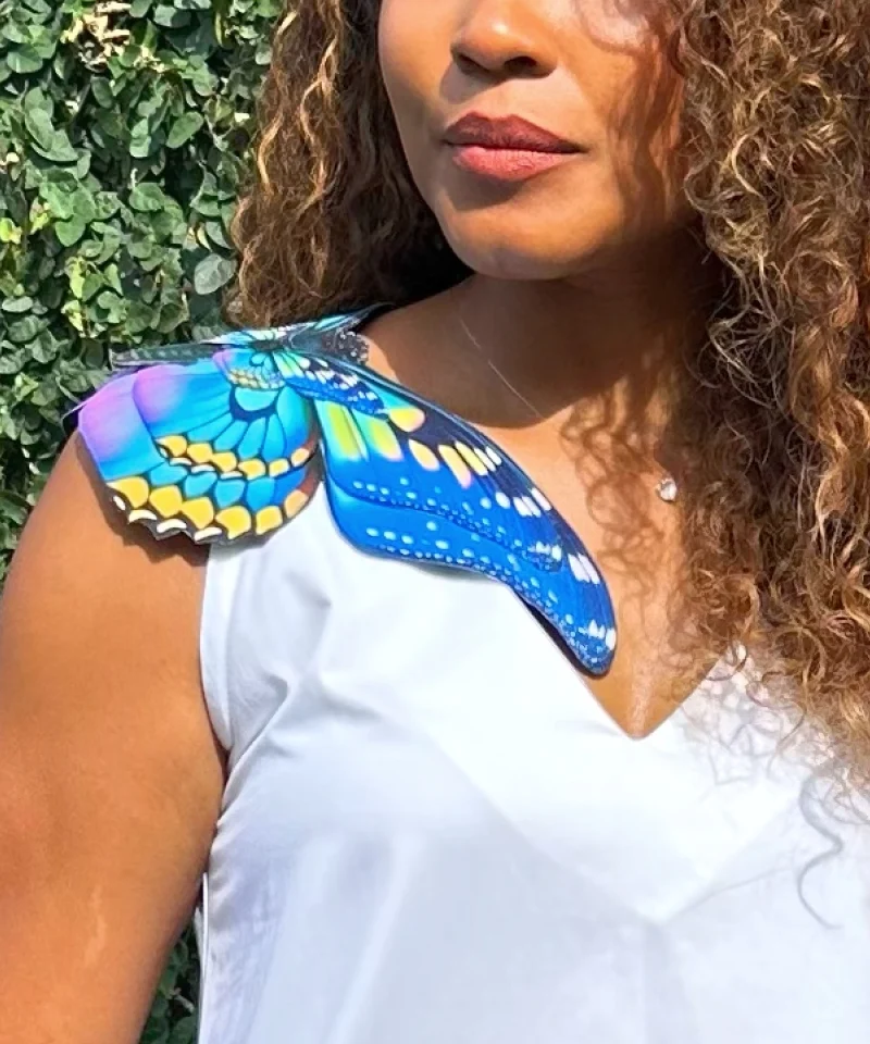 Pin de mariposa grande, un accesorio decorativo que añade un toque de fantasía y elegancia. Perfecto para complementar prendas con un detalle único y lleno de carácter.