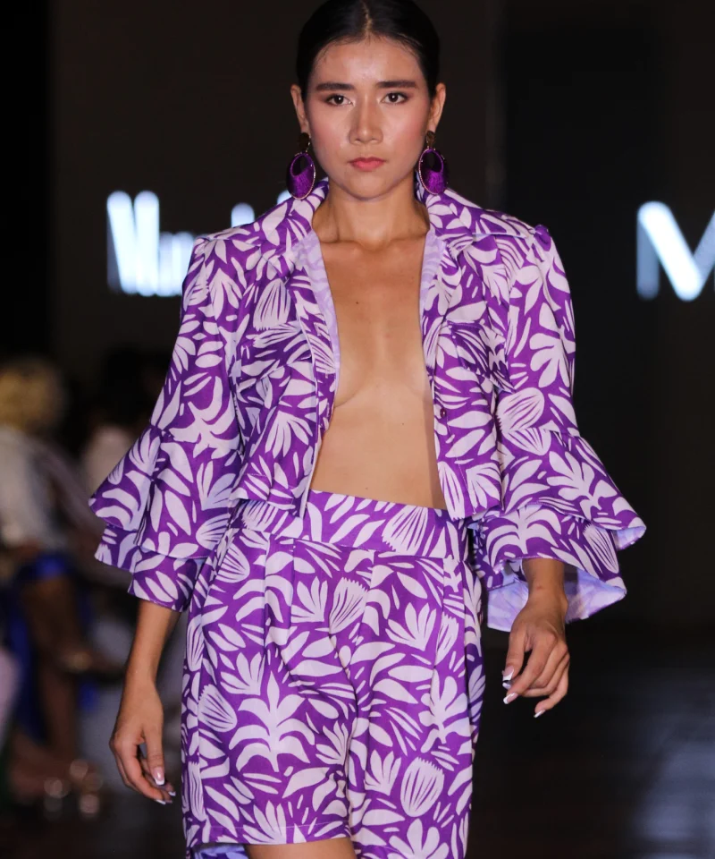 Set de alta costura en lino compuesto por bermuda y camisa. La bermuda cuenta con bolsillos laterales, pretina delantera lisa y pretina trasera enresortada para mayor comodidad. La camisa presenta mangas tres cuartos con doble bolero y cuello camisero, aportando un estilo fresco, sofisticado y femenino.