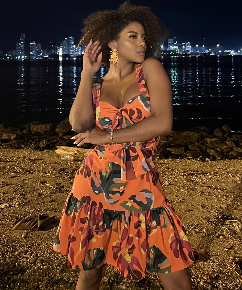 Vestido Amadea ajustado, con falda corta, confeccionado en seda estampada. Con acabados de alta costura, esta prenda combina un estilo moderno y elegante, perfecta para destacar con sofisticación en cualquier evento.